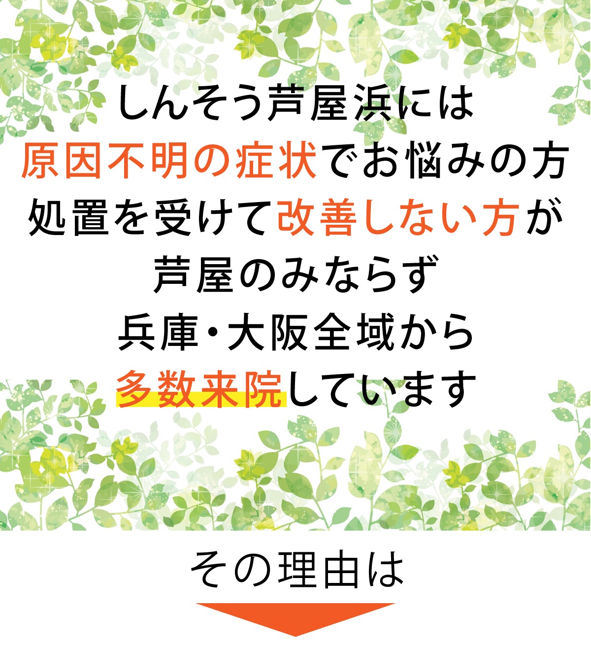 しんそう芦屋浜には他院では対応していなかったり、受け入れていなかったりする症状でも大丈夫です。