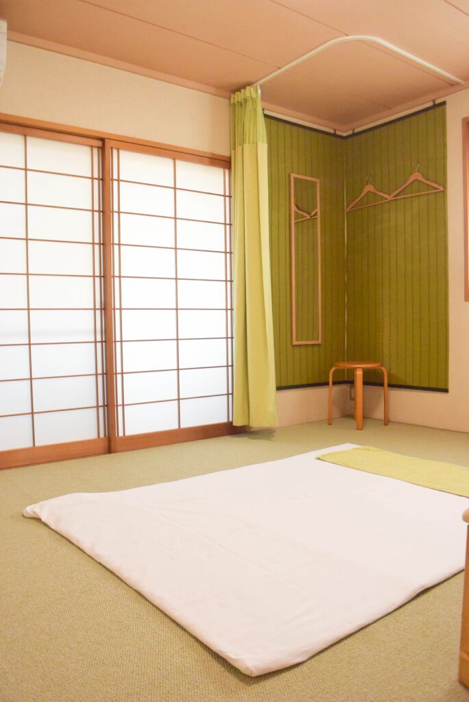 当院は一軒家の2階にあります。畳敷きの和室で、日あたり・風通しの良い空間です。