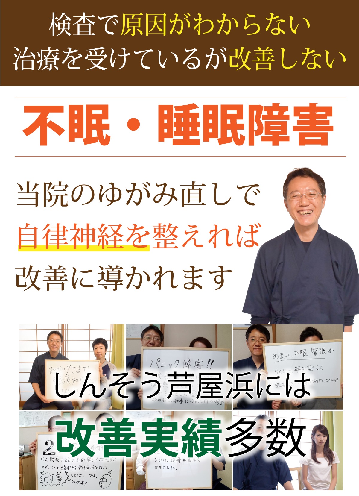 そんな不眠・睡眠障害にこそ、しんそう芦屋浜のゆがみ直しで自律神経を整えて欲しいのです。